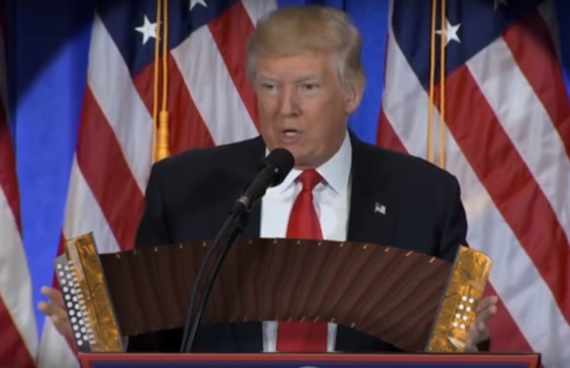 Это комичное замечание вдохновило австралийского видеографа Хью Паркинсона создать пародийное видео, в котором новоизбранному президенту США в руки вкладывается гармошка. Также звуковой ряд в ролике выстроен таким образом, что мелодия сопряжена с движениями Трампа.