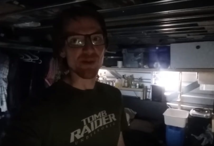 Мужчин переоборудовал кладовую по вынужденным причинам. Недавно он вернулся из продолжительного путешествия по Тихоокеанскому хребту. Перед тем, как отправиться, он съехал с квартиры и возвращаться ему, по сути, было не куда.
