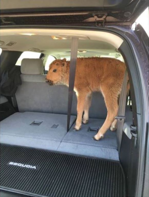 Двое туристов в Йеллоустонском национальном парке затолкали в машину детеныша бизона, предположив, что он замерз.
