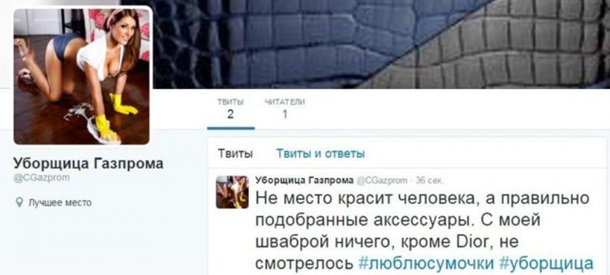#газпром #уборщица pic.twitter.com/X8lFGJcGRi— Evergreen (@Emilia_Bryant) January 13, 2016