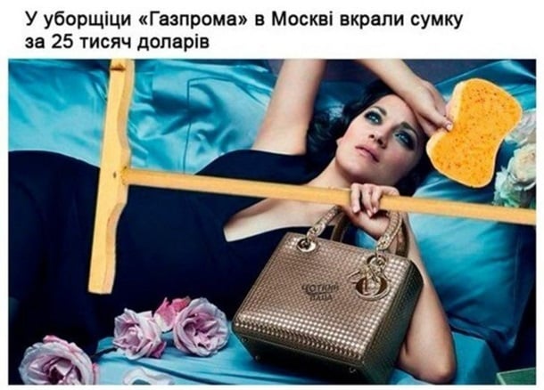 А тем временем, пока правоохранительные органы заняты поисками украденной сумочки, интернет пестреет фотожабами и шутками в адрес «скромной» уборщицы Газпрома.