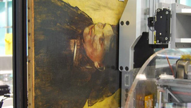 Теперь же исследователи с помощью рентгеновского сканера смогли определить, что под картиной был изображен портрет Эммы Добиньи, которая широко известна в качестве одной из «гладильщиц» в серии картин Дега. В рамках этого метода образцы облучаются тонким рентгеновским лучом, который выбивает электроны из атомов, ионизируя их. Другие электроны «падают» на вакантные места, испуская рентгеновское излучение, энергетические характеристики которого зависят от того, атомы какого химического элемента присутствуют в образце. В результате сканирования ученые могут получить двухмерную карту распределения химических элементов по образцу.