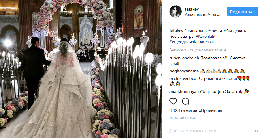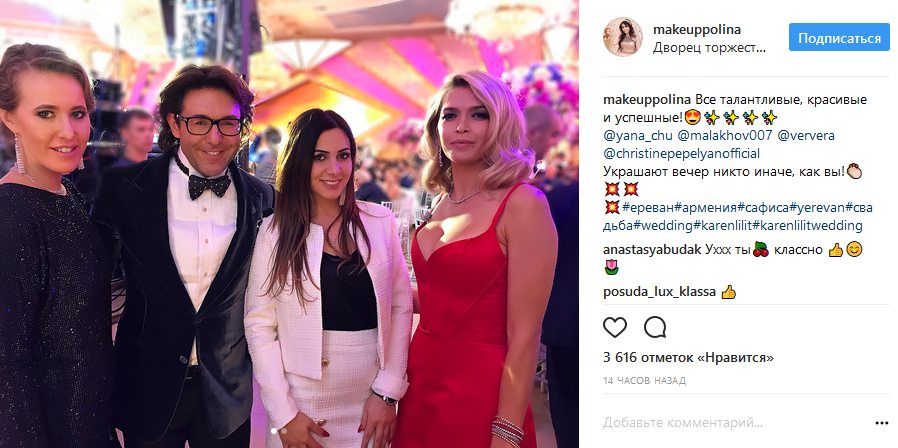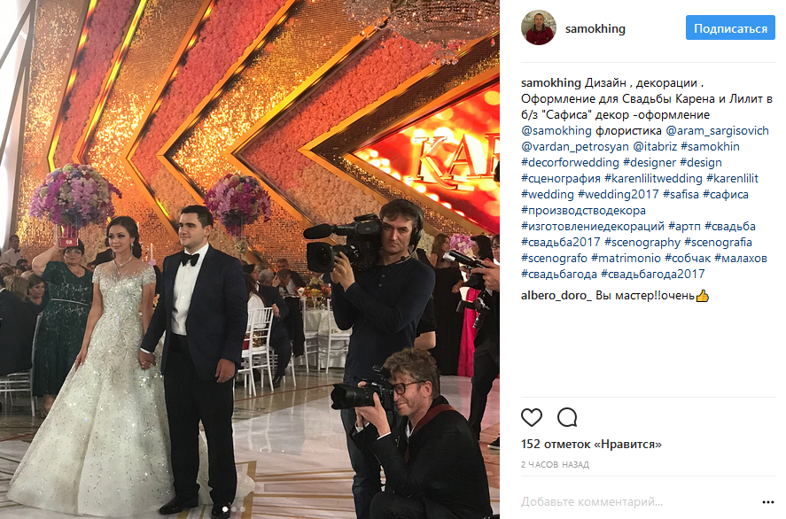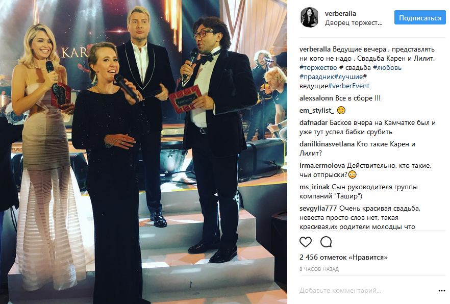 Ведущими свадьбы стали были Андрей Малахов и Николай Басков. Соответствующие фото появились в Instagram.