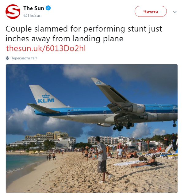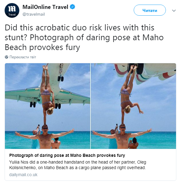 Украинцы Олег Колисниченко и Юлия Нос попали на страницы топовых мировых изданий после того, как исполнили опасный трюк на острове Сен-Мартен.