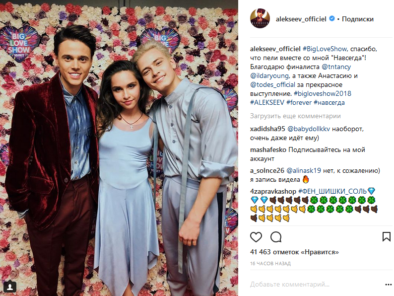 Так на сцене «Олимпийского» Alekseev выступил с песней «Навсегда». На подтанцовке у него были участники балета «Тодес». Украинский певец Артем Пивоваров исполнил для московской публики свой хит «Кислород».