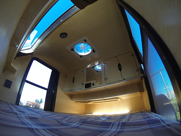 Прицеп по умолчанию утеплен и держит температуру как термос, так что и без обогревателя можно обойтись. «При температуре 9°С на улице два человека проснулись в кемпере с утра в 18°С — это без отопления», — утверждает Волков. Поэтому обогреватель целесообразен скорее для тех, кто хочет путешествовать зимой. А солнечными батареями можно оборудовать крышу — тогда прицеп станет полностью автономным.