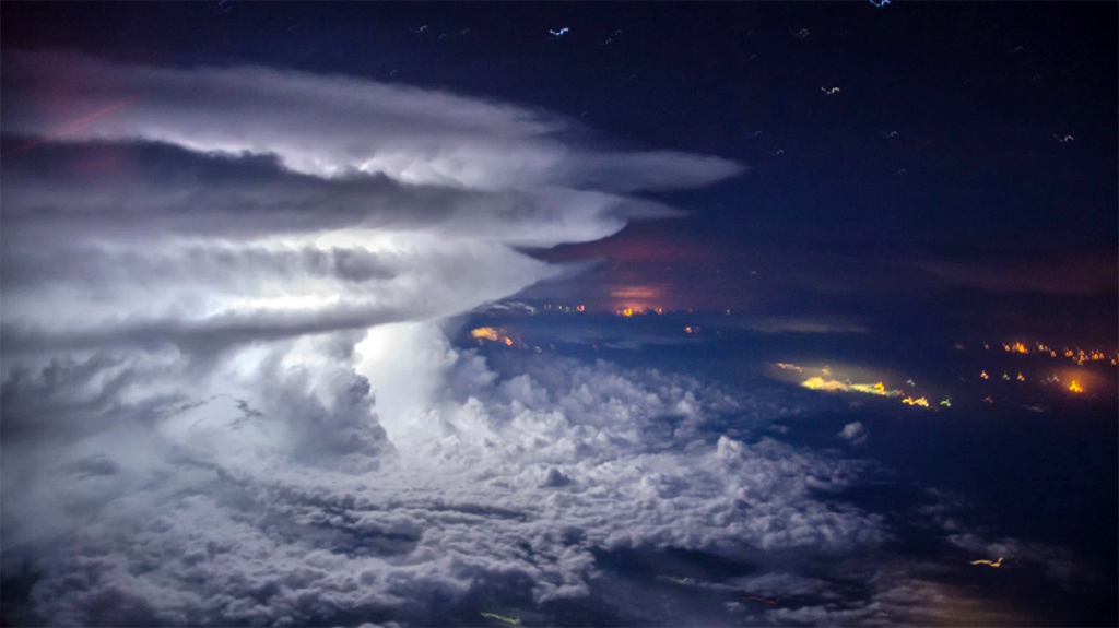 Пилот авиакомпании Ecuador Airlines Сантьяго Борха опубликовал фотографию, запечатлевшую тихоокеанский шторм с высоты в 11 тысяч метров в момент удара молнии, пишет Colossal.