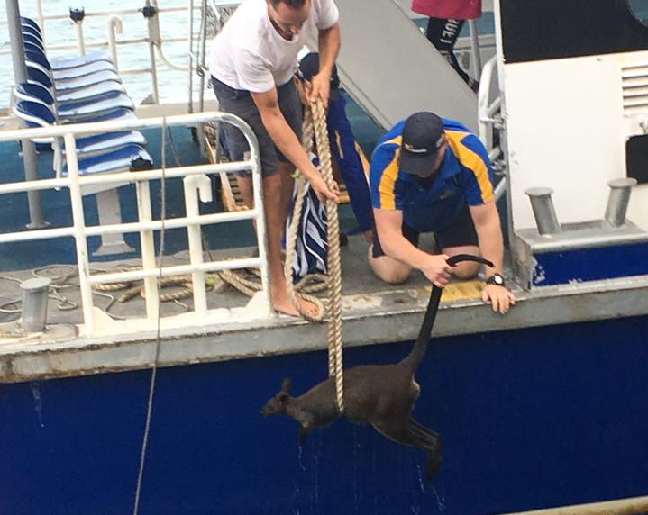 В Сиднейском заливе спасатели выловили кенгуру. Животное устало и выбилось из сил во время длительного заплыва. Кенгуру находился в пятидесяти метрах от берега и уже более часа барахтался в воде перед прибытием спасательной команды.
