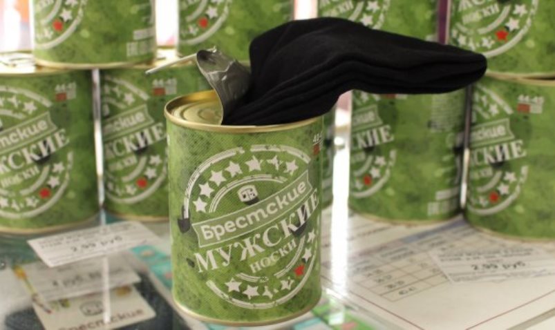 Фабрика по производству носков в Бресте выпустила ограниченную партию консервированных носков. Продукт представляет из себя жестяную банку, напоминающую по форме ёмкость для оливок или пива. Правда, внутри неё находится пара носков.