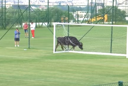 Товарищеский матч между болгарским ФК «Ботев» и кипрским «АЕЛ» был бессовестно прерван местной коровой, которая забрела на футбольное поле.