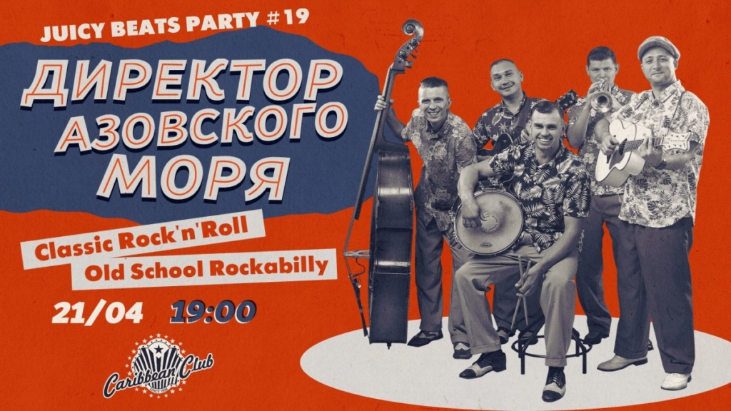 Одна из лучших рок-н-рольных групп Украины устроит зажигательный вечер в Киеве! 21 апреля в Caribbean Club Concert Hall выступит рокабилли-бэнд «Директор Азовского моря» с программой «Южное Буги».