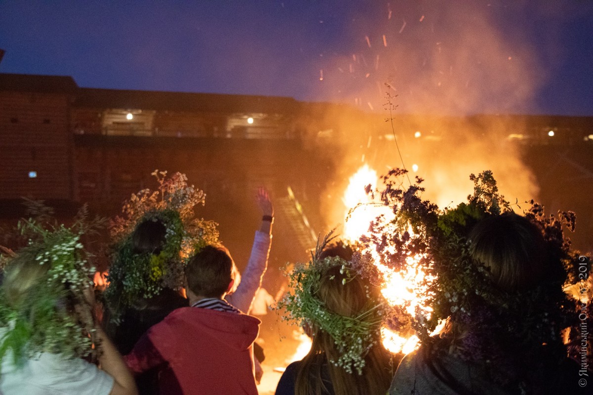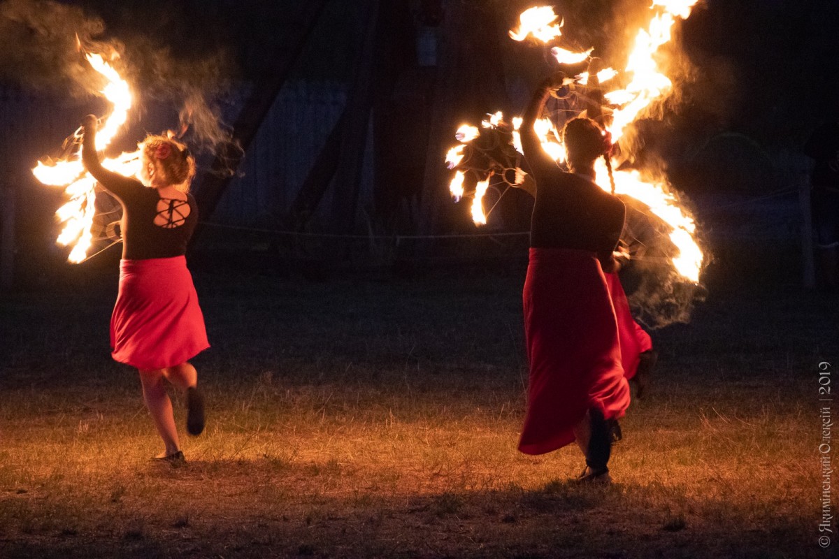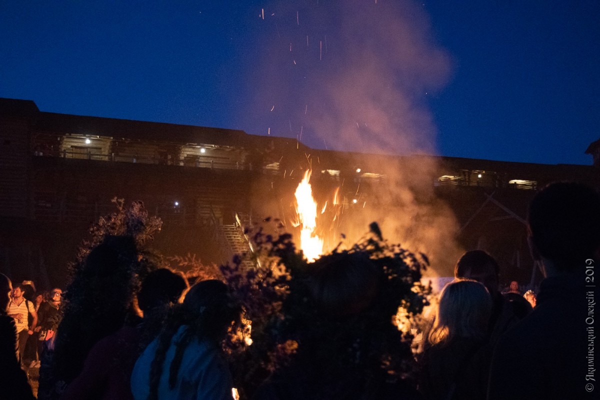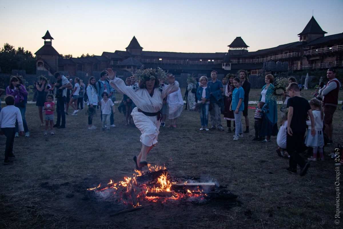 С наступлением темноты гостей парка ждала зажигательная, в прямом смысле, ночная программа. Жители Древнего Киева зажгли костры. Поэтому все гости могли обновиться и сжечь негатив, прыгнув через костер. Кульминацией огненной феерии стало сжигание чучела Купалы, чтобы с ним сгорели все проблемы. Веселые хороводы вокруг костра подарили всем небывалый заряд позитива.