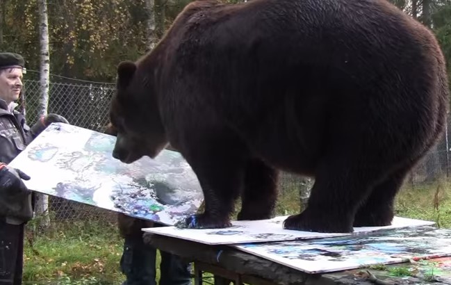 В Хельсинки начала свою работу выставка картин «Сильные и нежные касания», автором которых является 17-летний бурый медведь Юусо из центра диких животных «Куусамо».