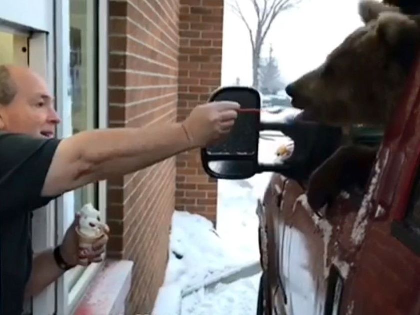 В Сеть попало видео, на котором медведя в машине кормят мороженым из окна автокафе. Ролик появился на канале парк Дискавери Уайлдлайф, правда, его уже удалили из-за разразившегося скандала.