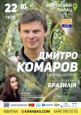 С новой программой «Бразилия – 2018» Дмитрий Комаров посетит 6 украинских городов: Харьков, Днепр, Киев, Ужгород, Черновцы и Одессу.