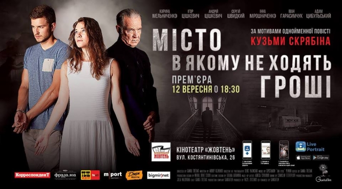 12 сентября в 19:00 в кинотеатре «Жовтень» состоится киевская премьера украинского фильма «Город, в котором не ходят деньги», снятого по мотивам одноименной повести Андрея Кузьменко (Кузьмы Скрябина) режиссером Анной Третьяк.