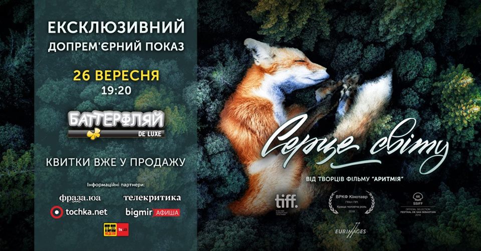 В Киеве состоится гала-премьера фильма «Сердце мира». Мероприятие пройдет 26 сентября в кинотеатре ««Баттерфляй DeLuxe» (ул. Антоновича, 50). От создателей фильма «Аритмия».