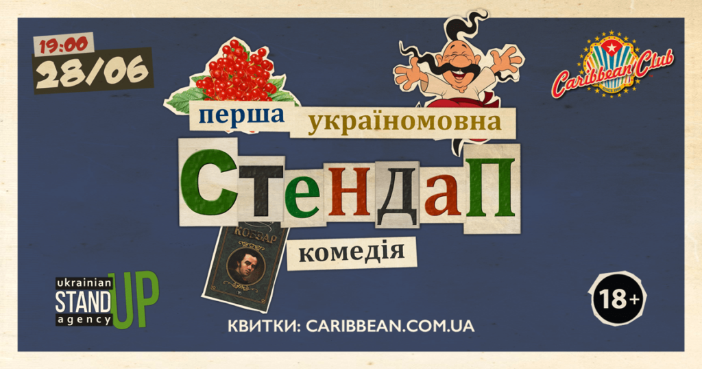 28 июня в киевском Caribbean Club Concert Hall состоится концерт Первой Украиноязычной Стендап Комедии от «Ukrainian Stand-Up Agency». На одной сцене соберутся 5 супер-комиков, известных зрителям по разным ТВ-шоу.