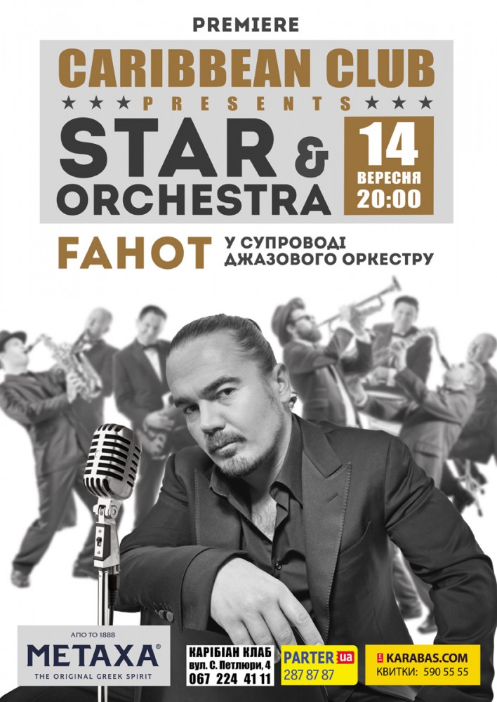 Лучшие украинские вокалисты в сопровождении джазового оркестра и десятки мировых хитов в новых интерпретациях! Caribbean Club Concert Hall представляет новый масштабный проект, которому нет аналогов в Украине. 14 сентября — премьера музыкального шоу STAR & ORCHESTRA!