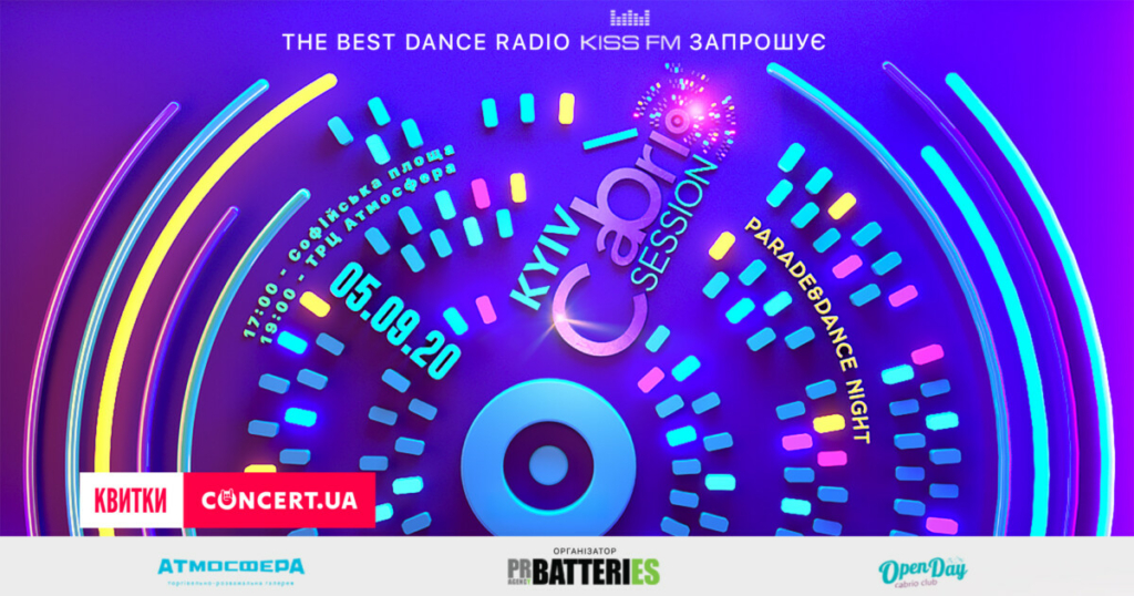 Kyiv Сabrio Session состоится в двух отделениях: дневном – масштабном Cabrio Parade по центральным улицам столицы, и ночном – Cabrio Dance Night – безопасной танцевальной вечеринке под открытым небом на паркинге ТРЦ Атмосфера, где около сотни кабриолетов выстроятся в огромный круг, в центре которого разместится DJ-place, освещенный светом автомобильных фар. При этом диджейский сет будет транслироваться в прямом эфире танцевальной радиостанции KISS FM UKRAINE, которая гарантирует четыре часа качественного саунда – гостям достаточно будет настроить радиоприемники своих кабриолетов на частоту 106,5 FM. Шоу будет дополнено художественным представлением на одном из самых больших экранов страны.