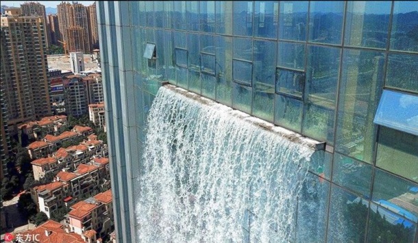 You are not fooled by your eyes! Stunning #waterfall is spotted cascading down a building in Guiyang, China pic.twitter.com/GKdoFHFKDA