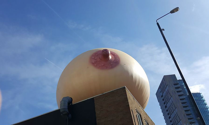 На крыше дома в центре Лондона появилась огромная инсталляция, которая представляет из себя женскую грудь. Инициатором проекта выступило креативное агентство Mother London, которое таким образом стремится обратить внимание граждан на проблему грудного вскармливания.