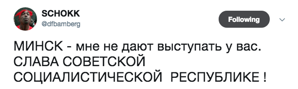 Стоит отметить, что отказ исполнитель получил еще на стадии выдачи гастрольного удостоверения. Представители Управления культуры Мингорисполкома попросили у организаторов мероприятия, клуба «Брюгге» распечатки текстов рэпера. Те предоставили все необходимое, тщательно отредактировав текст и заменив все матерные и похабные слова литературными аналогами. Но чиновников провести не удалось – они смогли насладиться творчеством российского артиста в Интернете, после чего приняли решение отказать ему в возможности выступать в Минске.