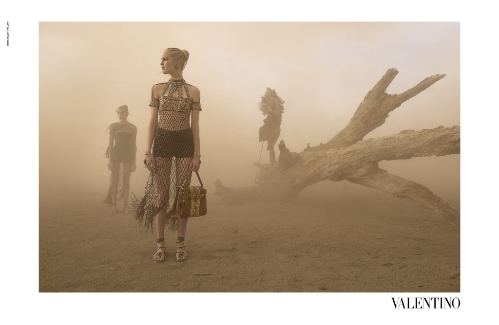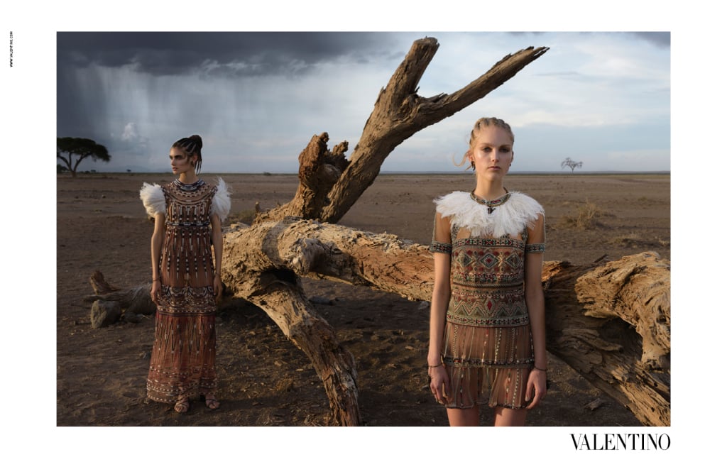 Креативные директора дома Valentino Мария Грация Кьюри и Пьерпаоло Пиччоли развили в рекламной кампании трайбалические мотивы, вдохновившие их на создание коллекции весна-лето 2016. Модели с характерными для африканских аборигенов прическами и в платьях в технике пэчворк и с размытыми, словно выгоревшими цветочными принтами, а также орнаментальными вышивками и декором из бисера и перьев позируют на фоне хижин масаи и ландшафтов саванны. На нескольких снимках вместе с профессиональными манекенщицами запечатлены местные жители в ярких племенных одеяниях: они танцуют, занимаются домашними делами и даже гонят буйвола на выпас.