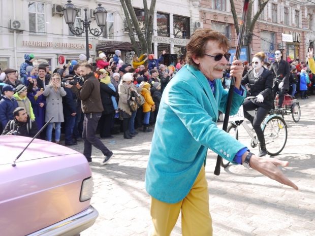 Изюминкой парада представители группы «Маски», ехавшие в прекрасном розовом кабриолете во главе с известным украинским режиссером и актером Борисом Барским.