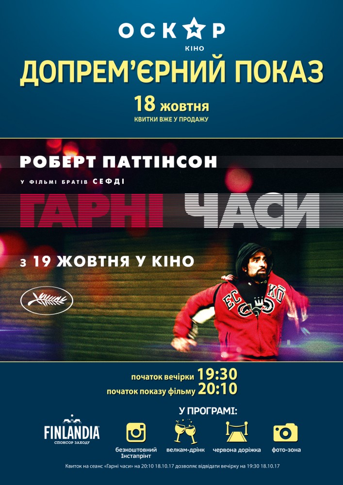 На экранах сети кинотеатров «Оскар» фильм «Хорошее время» стартует с 19 октября.