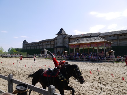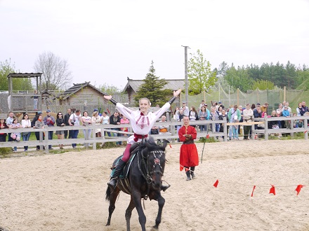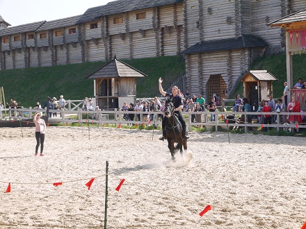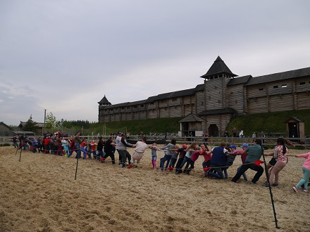 В перерывах между соревнованиями внимание зрителей привлекли различные мастер-классы. Взрослые и дети были заняты изготовлением гончарных изделий. А для желающих похудеть прямо на ристалище элегантная танцовщица организовала танцевальный флеш-моб, в котором участвовали посетители разных возрастов.Но и это еще не все. Для того, чтобы подбодрить тех, кто не участвовал в флеш-мобе, была организована стародавняя забава — перетягивание канатов. А любители более активного отдыха стреляли из стародавнего лука и метали кинжалы.