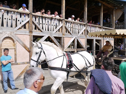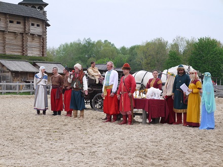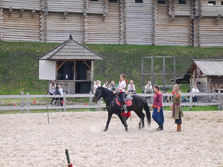 У входа в парк, как уже сложилось по традиции, зрителей встречали жители Древнего города, угощая хлебом-солью. Потом внимание переключалось на ристалище, где во всю готовились участники фестиваля.