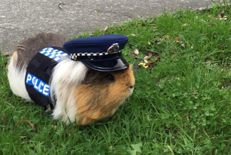 Полиция Новой Зеландии официально объявила о том, что приняла в свои ряды морскую свинку Элиота. Ему в шутку присвоили звание констебля. В соответствии с правилами ему выдали специальную жилетку и фуражку.