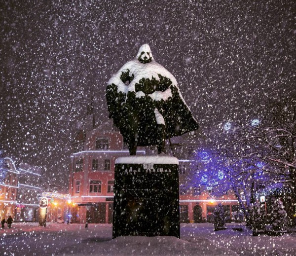 Из-за снегопада монумент известного польского исторического государственного и военного деятеля XVII века Якуба Вейхера стал невероятно похожим на персонаж саги «Звездные войны».