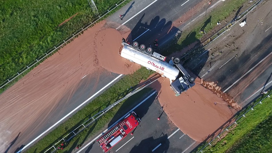 Na #A2 Poznań-Warszawa przewróciła się cysterna z czekoladą. Trwa sprzątanie jezdni ???? #czekolada pic.twitter.com/EnSNT8ri1q