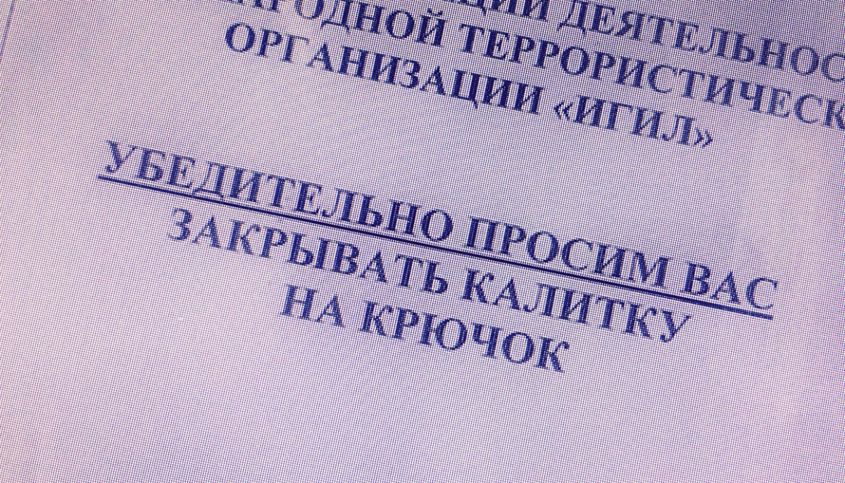 В соцсетях появилась фотография объявления с просьбой закрывать на крючок калитку на территорию детского сада. Дополнительные меры безопасности в учреждении ввели в связи с активизацией «Исламского государства».