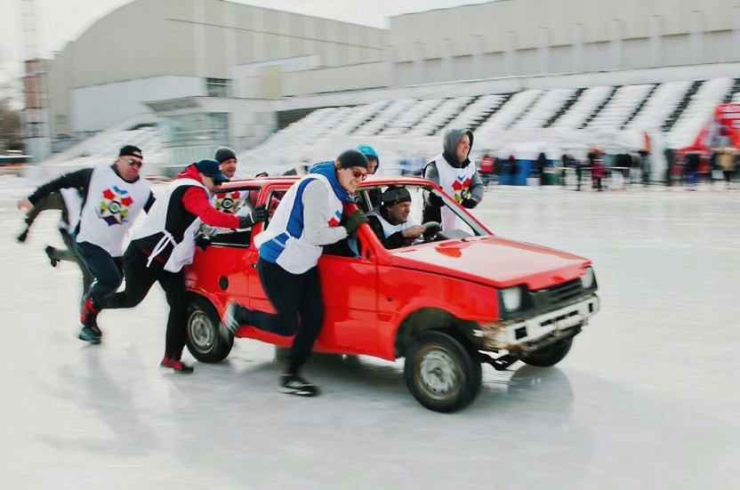 На выходных в Екатеринбурге состоялся турнир по «автокёрлингу». Вместо камней в этой игре использовалось шесть подержанных автомобилей «Ока». Их облегчили, сняв двигатели и стёкла.