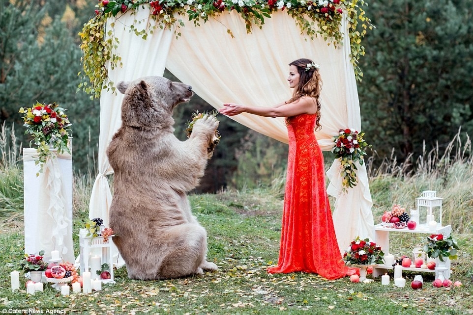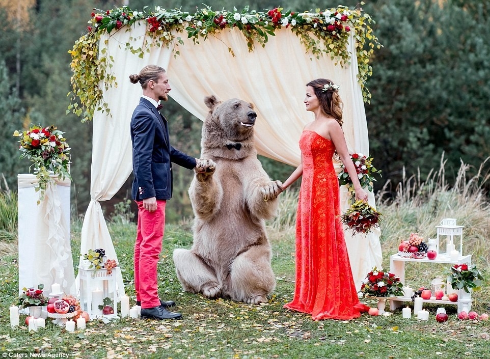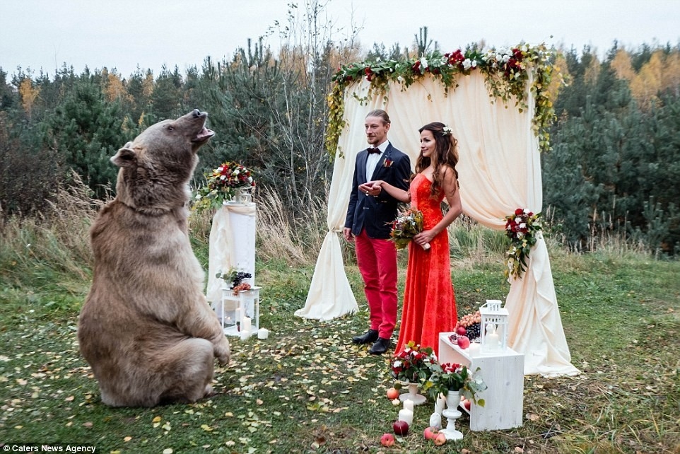 В России бурый медведь Степан провел церемонию бракосочетания для влюбленных. Об этом сообщает Life.ru.