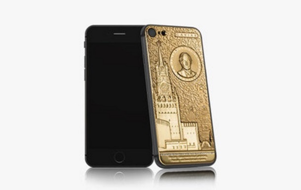 Смартфон с изображением Собора Василия Блаженного и Спасской башни Кремля инкрустирован бриллиантами. Кроме того, рядом выгравированы строки из российского гимна и имя президента РФ.