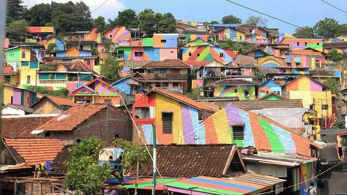 Бедное маленькое село в Индонезии под названием Кампунг Пеланги преобразилось после того, как 232 дома в нём перекрасили в разные цвета радуги. На эти работы из госбюджета было выделено 22 467 долларов.