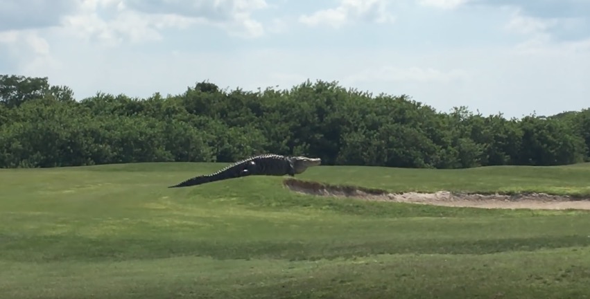 Во Флориде на поле для гольфа вышел «погулять» пятиметровый аллигатор, сообщает Time.