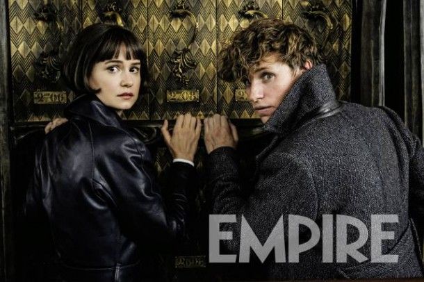 На фото запечатлены Ньют Скамандер в исполнении Эдди Редмэйн и его возлюбленную Тину, которую сыграла Кэтрин Уотерстон. Они прильнули руками к пронумерованным ящикам и оглядываются с опаской. Снимок очень заинтриговал поклонников франшизы.