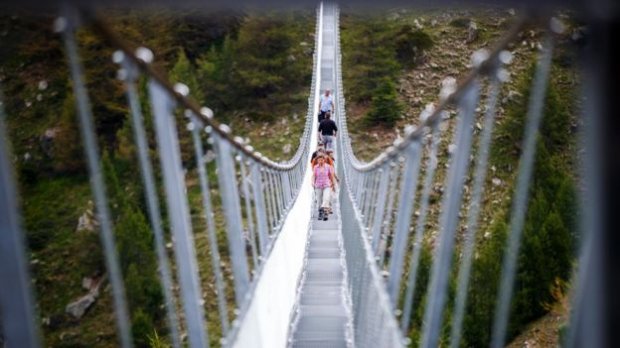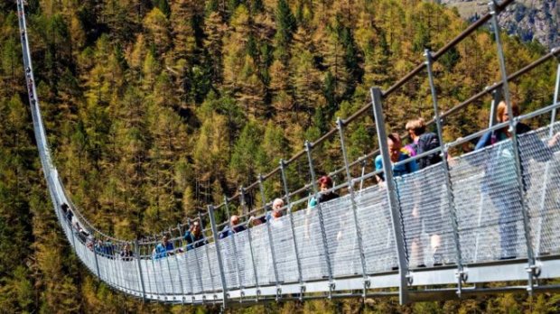 29 июля в швейцарском кантоне Вале открылся самый длинный подвесной мост. Его длина достигает 494 метров. А ширина – всего 65 см. Он приблизительно на 50 метров длиннее предыдущего рекордсмена в этой сфере, который находится в немецких горах Грац. Новый мост сразу стал местной достопримечательностью, привлекая туристов из разных стран.