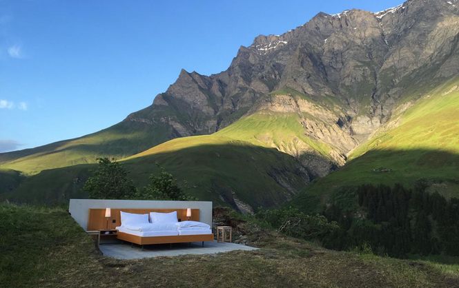 Уникальный отель под названием Null Stern Hotel находится среди Альп на высоте 6,463 метров над уровнем моря и располагает единственным удобством – двухместной кроватью. Спальное место находится на лужайке и не ограждено стенами. Кроме того, там нет ни душа, ни уборной, пишет Travel + Leisure.