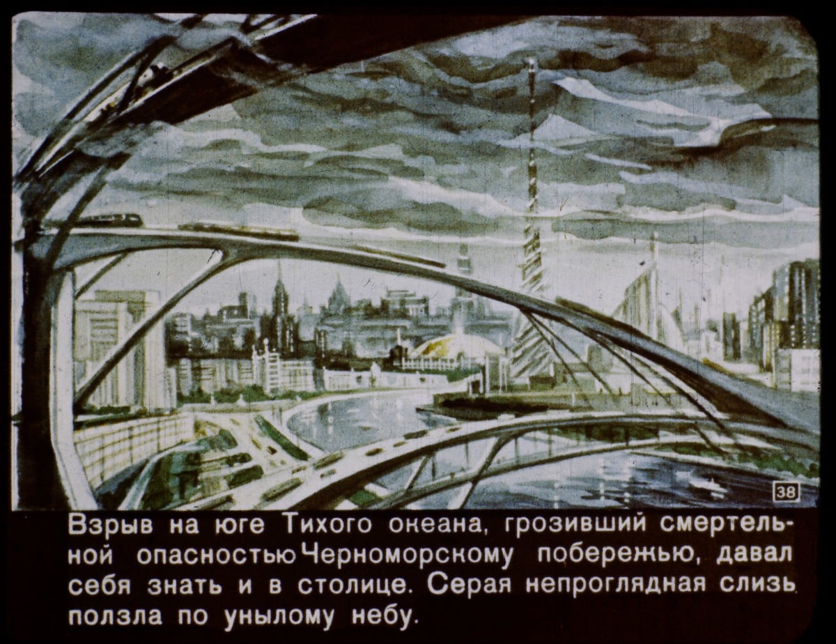 В этих условиях СССР продолжал бороться с «империалистами», испытывающими «запрещённое мезонное оружие». Всего в диафильме 45 слайдов.