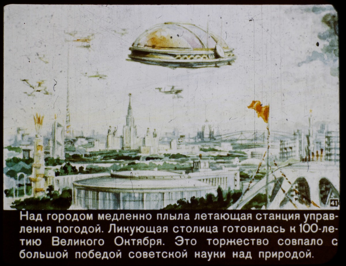 В соцсетях опубликовали советский комикс, датированный 1960 годом. В нём художники и авторы студии «Диафильм» фантазировали на тему того, какой будет страна советов в годовщину Великой Октябрьской революции, то есть в 2017 году.
