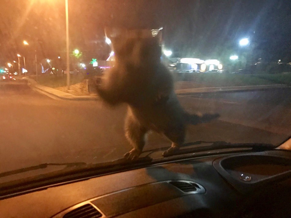 В американском городе Колорадо-Спрингс спешившему на вызов полицейскому пришлось остановиться, чтобы снять с лобового стекла своего автомобиля енота. Фото животного, которые успел сделать офицер, опубликовало в своем Facebook полицейское управление города.
