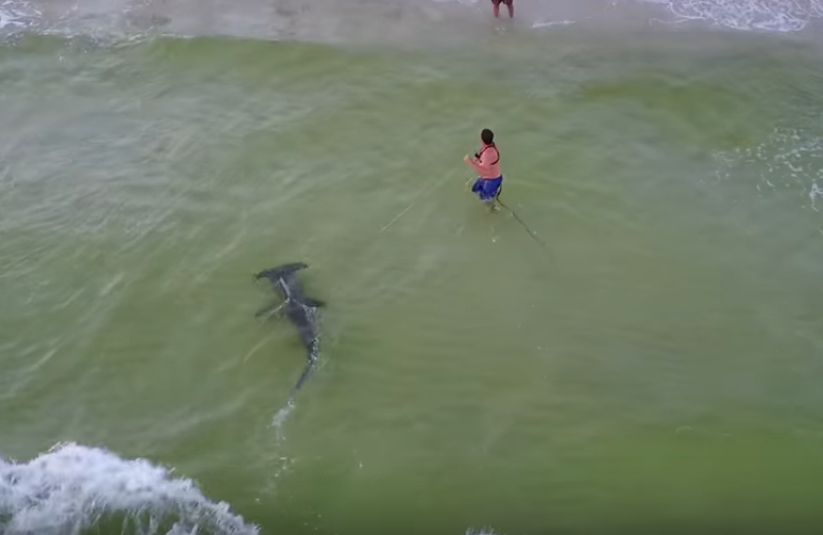 Опубликовано видео, в котором показывается, как рыбак во Флориде (США) поймал на удочку двухметровую рыбу-молот. Посмотреть на необычный улов пришло посмотреть множество отдыхающих.