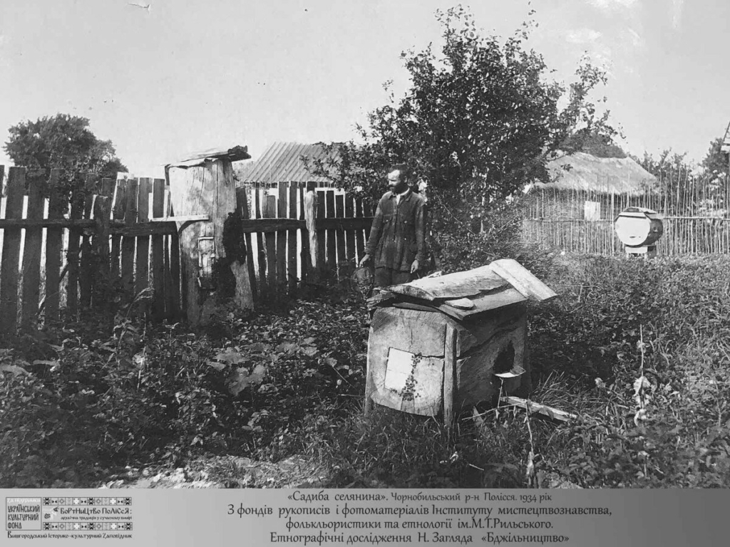 Среди представленных документов — грамота, по которой полковник Василий Подгорецкий передает в аренду борту, находившегося в Киеве, на земле церкви Василия Кесарийского. Также в фотопроект вошла фотография с экспедиционного дневника известной этнологини Натальи Заглады, сделанная во время экспедиции 1936 в Чернобыльский и Дымерский районы. Это пасека Зиновия Круковца — у него было небольшое количество рамочных ульев, но основную часть пасеки составляли колодные ульи. Еще одно интересное фото — из архива кино- и фотодокументов им. Пшеничного. На фото, которое находится в архиве документов, во время Второй мировой войны были вывезены в Германию, а затем возвращены в Украину, — аккуратная пасека с колодных ульев.