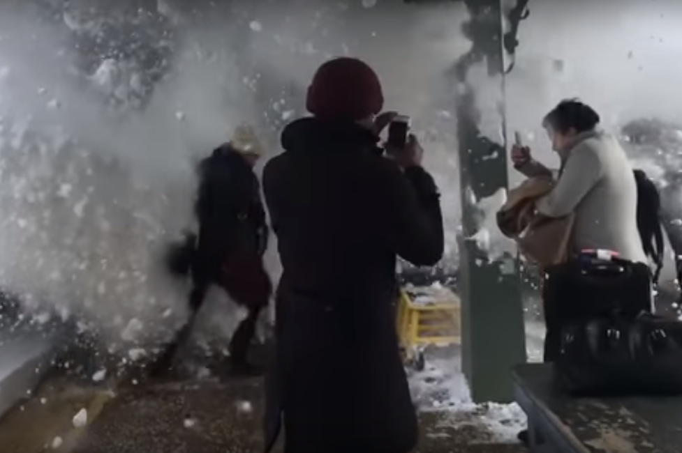 700 тыс. просмотров только на Youtube менее чем за сутки собрал ролик, в котором показывается, как поезд врезается в сугроб на станции, отчего снег разлетается по всех платформе накрывая пассажиров. Видео выложено в замедленном режиме, благодаря чем можно в подробностях рассмотреть, как комки снега широко разлетаются в воздухе.
